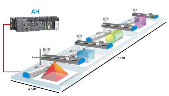 AH500的運(yùn)動(dòng)控制功能,可實(shí)現(xiàn)任意三軸直線(xiàn)插補(bǔ)、任意兩軸圓弧插補(bǔ)、及任意三軸螺旋插補(bǔ)與連續(xù)插補(bǔ)功能,透過(guò)臺(tái)達(dá)DMCNET高速通訊網(wǎng)絡(luò)架構(gòu),更可達(dá)到1ms的指令周期內(nèi)12軸同動(dòng)或4組3軸同動(dòng)插補(bǔ)功能。無(wú)論是復(fù)雜的過(guò)程控制或是精密的運(yùn)動(dòng)控制需求,都能透過(guò)AH500來(lái)實(shí)現(xiàn),有效應(yīng)用于各種產(chǎn)業(yè)機(jī)臺(tái),如建材機(jī),經(jīng)編機(jī),食品包裝機(jī)等等。